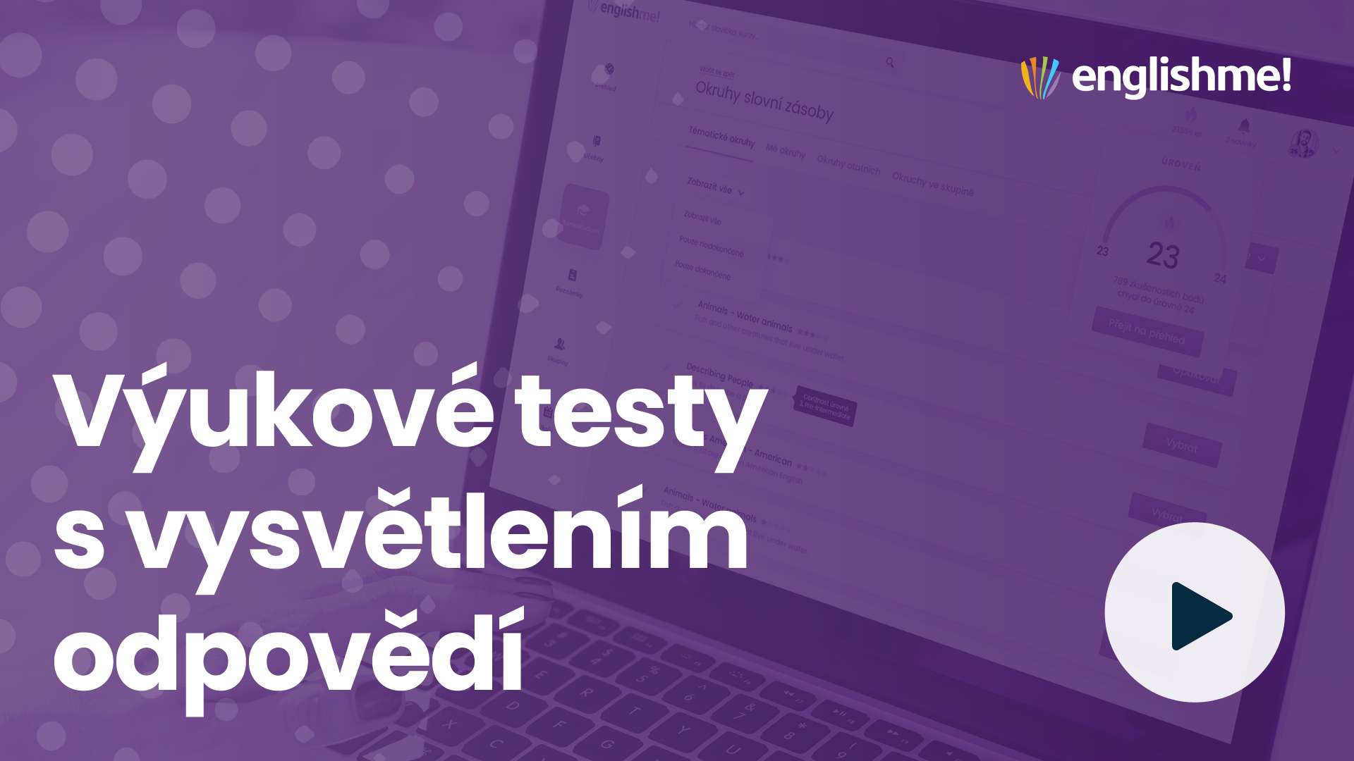 - Zuzana KadováDěkuji za celý váš super projekt EnglishMe. Při distanční výuce je pro nás nepostradatelný při učení nové slovní zásoby, ale využíváme samozřejmě i další možnosti.
