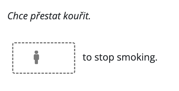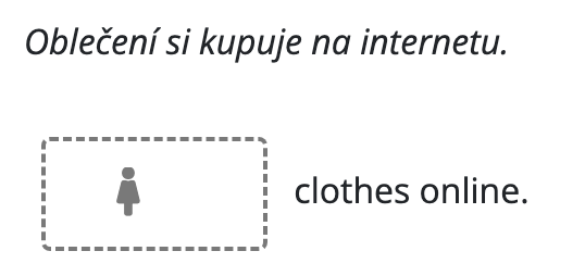 Pro rozlišení mužského a ženského rodu v překladových doplňovačkách zobrazujeme jako nápovědu symbol panáčka. Když do pole začnete psát, symbol zmizí. Ikonka se automaticky zobrazuje všude tam, kde pole pro doplnění má obsahovat osobní zájmena he/she a přivlastňovací his/her. V některých případech to možná bude nadbytečné.