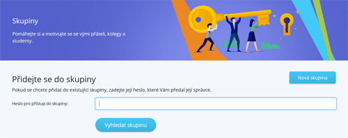 Členové (žáci, studenti apod.) se do skupiny přihlašují také na stránce Skupiny. Kód, který obdrželi od správce skupiny zadají zde v části Přidejte se do skupiny.