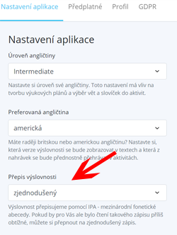 Zjednodušený přepis výslovnosti si můžete zapnout v nastavení nového English Me: